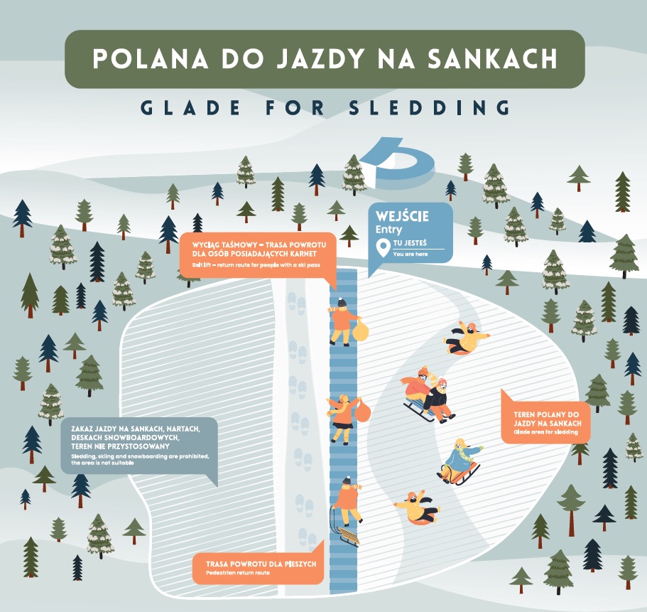 Polana do jazdy na sankach i przenośnik czynne przy sprzyjających warunkach pogodowych - aktualny status tutaj