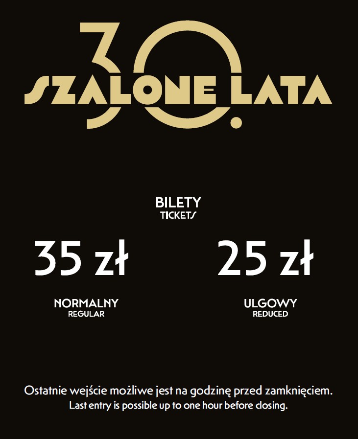 Bilety dostępne w sprzedaży wyłącznie w kasie Wystawy Szalone Lata 30.