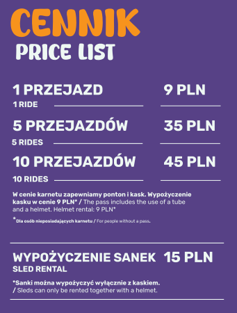 WAŻNE: W strefie sanek obowiązuje bezwzględny nakaz korzystania z kasku.