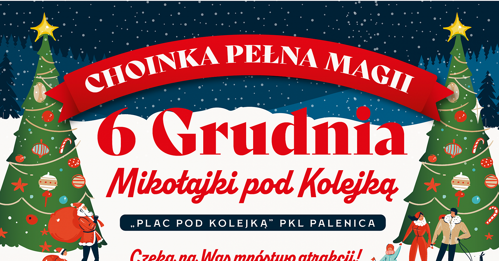 Czeka nas dzień pełen atrakcji – od iluzji i spektaklu dla najmłodszych, po animacje, koncert i wielki finał: uroczyste rozświetlenie choinki o 17:30.